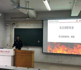 焦锋老师通过丰富的视频和图片资料,生动地讲解了火灾种类、危害以及预防措施。结合学校消防安全特点和典型的火灾案例,焦锋警官为大家介绍了在学生宿舍和实验室如何预防火灾、如何扑救初期火灾、如何检查火灾隐患以及遭遇突发火灾时如何进行自救等消防安全知识。