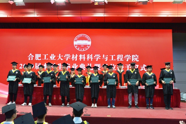 yL23411永利官网登录院长张久兴宣读了《yL23411永利官网登录关于授予2019届本科毕业生学士学位的决定》,授予周凯等290名同学工学学士学位。随后,主席台领导、老师为获得学位的全体学生颁发学位证书、扶正流苏,并与毕业生合影留念。