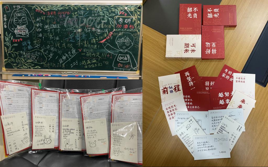 加油助威,怀爱前行。12月10日后,yL23411永利官网登录为考研学子制作考研加油栏,在加油栏中鼓励学子写下个人的焦虑、拼搏和奋斗誓言;学院师生用文字和Q版的绘画精心设计和制作考研加油贺卡,为缓解考生考前焦虑情绪,增强备考信心;制作考研加油视频,联动师生家长,共同为学子摇旗呐喊,送上最诚挚的祝福。