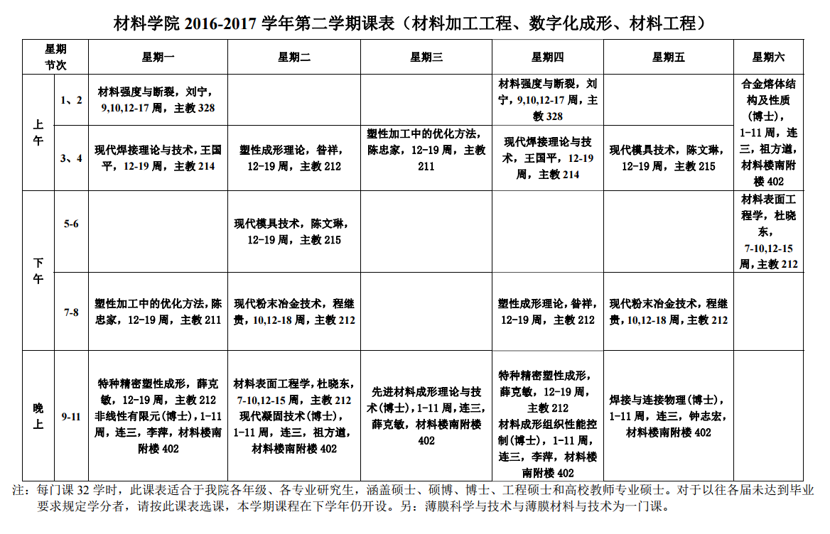 yL23411永利官网登录 2016-2017 学年第二学期课表