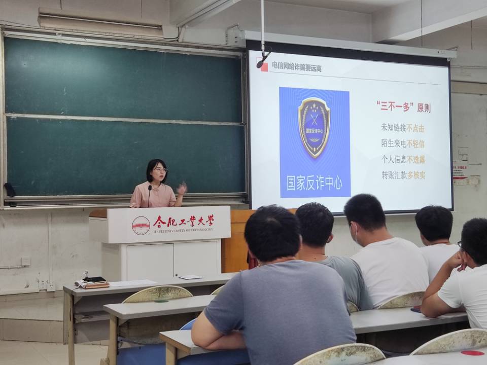 9月6日,学院结合研究生新生入学教育,由研究生辅导员结合当前校园诈骗特点以及高校工作实践经验,通过身边实际案例分析,为同学们讲解了电信诈骗的常见形式、作案手段,如何防范电信诈骗及上当后的补救措施。建议同学们下载“国家反诈APP”,提醒同学们一旦发现遭遇电信诈骗,要及时告知学校和警方,用法律武器保护自己合法权益。