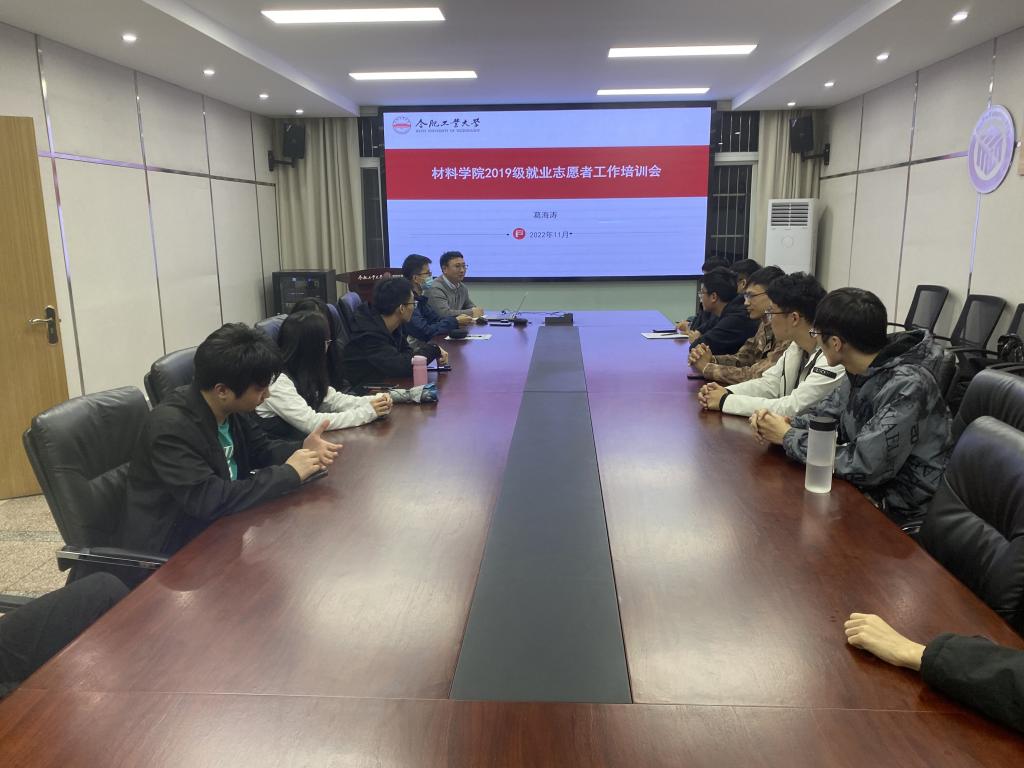 为提升学院毕业班就业服务志愿者朋辈帮扶能力与水平,搭建好就业信息平台,发挥就业志愿者朋辈帮扶优势,11月13日晚,yL23411永利官网登录在院综合服务中心210会议室举办“志愿职引未来 赋能朋辈帮扶”就业志愿者主题培训会,学院毕业班辅导员、各专业就业志愿者参与本次培训。