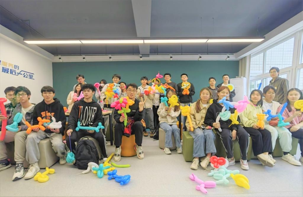 在活动过程中,参加活动的同学在工作人员的指导下学习基本的充气和打结,随后通过旋扭,对折,穿插多种手法来将五颜六色的气球编制出自己喜欢的造型,如气球小狗,气球小花,气球天鹅等缤彩纷呈的样式。不仅如此,同学们也可以大开脑洞来对一个个气球造型进行创意性的组合与装配,使其更为丰富多样,创造出独属于自己的气球造型。在收获快乐的同时,同学们也激发了自己的创意,得到了满满的成就感。在活动现场,同学们欢声笑语,相互探讨,营造出和谐友好,童真有趣的良好氛围。