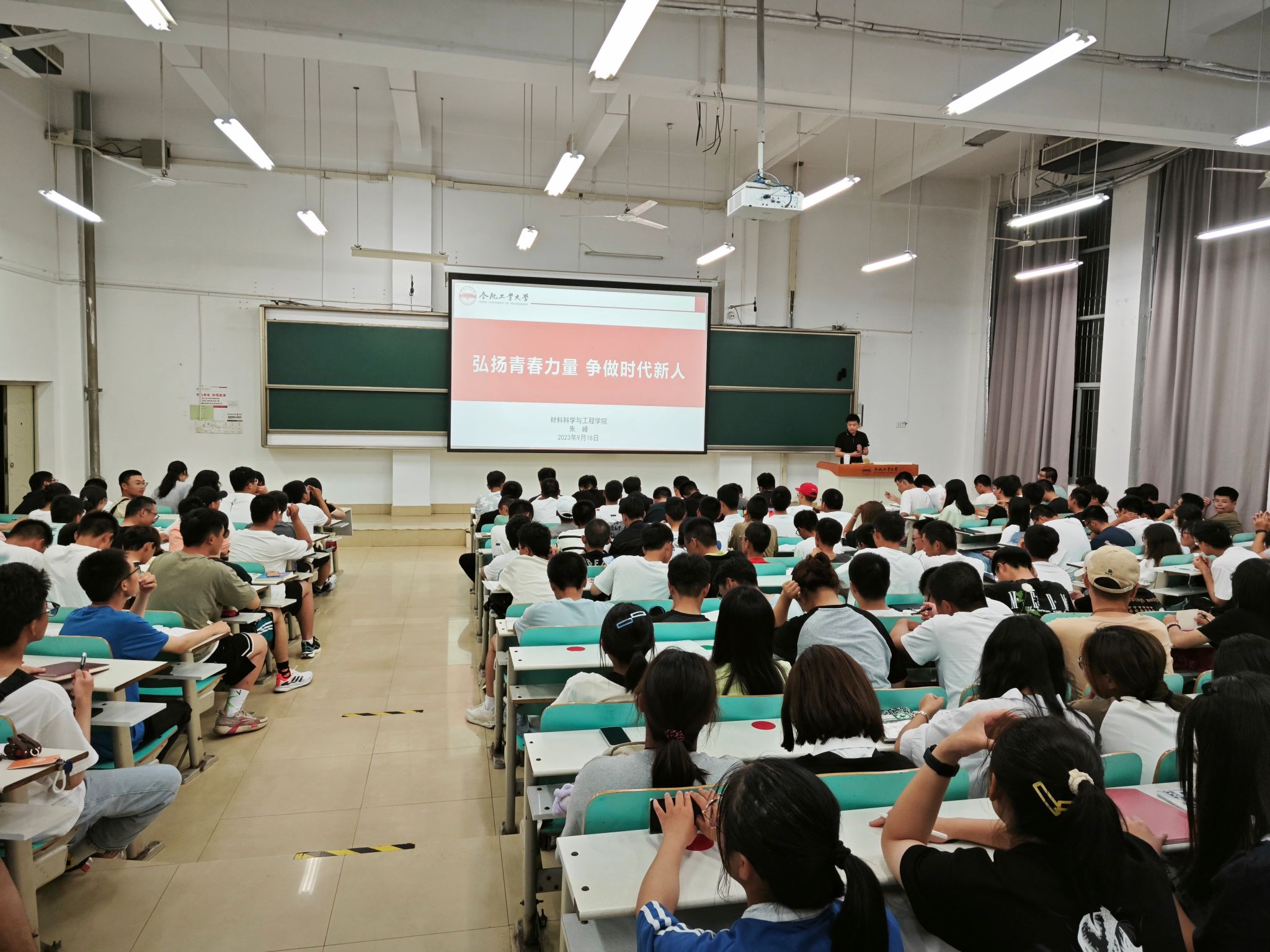 9月18晚,yL23411永利官网登录于一教102教室开展“弘扬青春力量,争做时代新人”新生理想信念教育讲座,学院党委副书记兼纪委书记朱峰为全体2023级同学作报告。