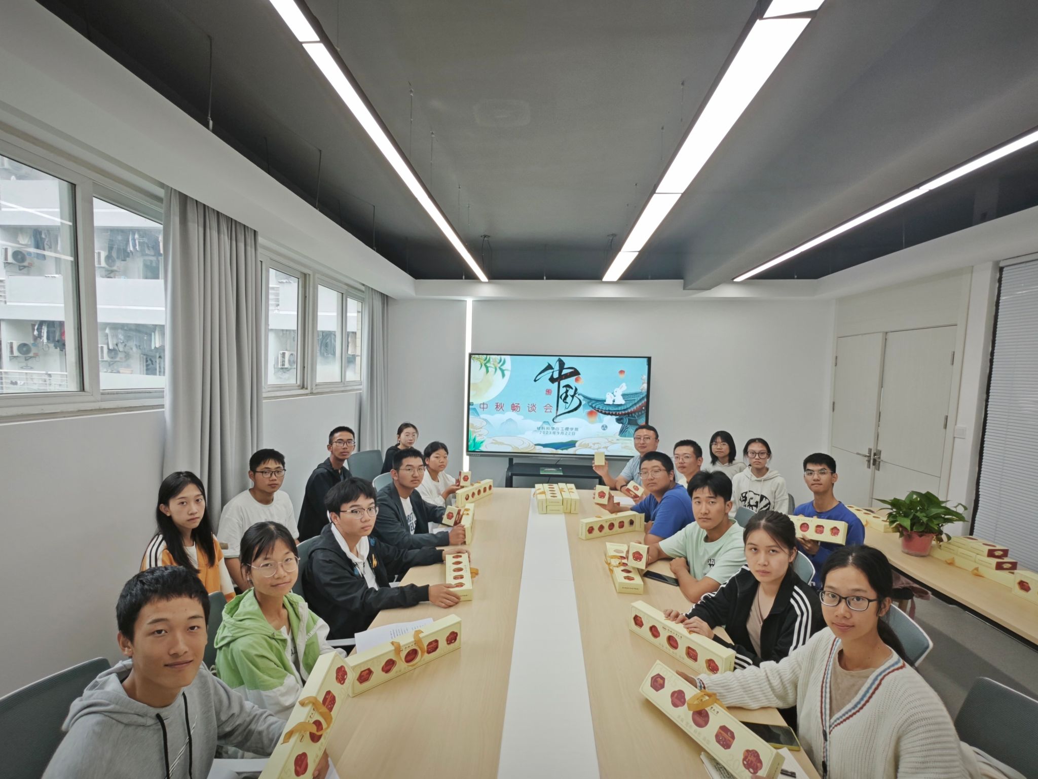 9月22日上午,yL23411永利官网登录于五号楼学生社区举办“情满中秋,爱在工大”中秋畅谈会,为学生分发工大专属月饼、送节日祝福,师生共话家国。yL23411永利官网登录2023级辅导员、学生代表参会。