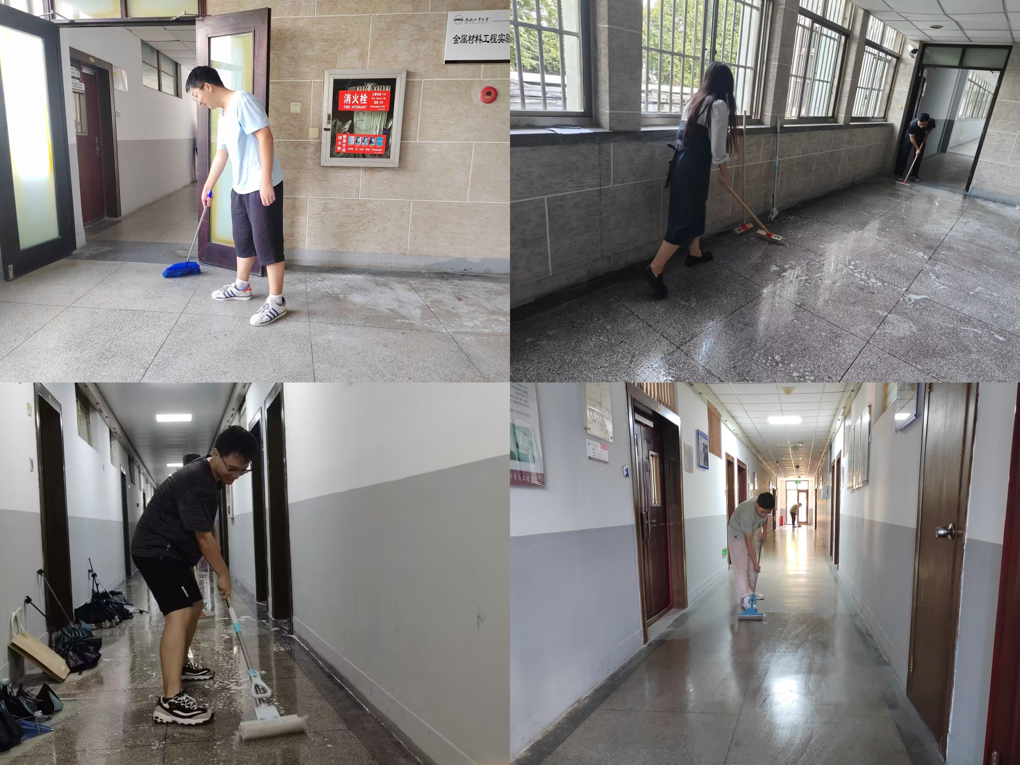 活动现场,在各组组长的统筹安排下,小组成员有序领取卫生工具,陆续完成负责区域卫生。在确保安全的前提下,大家各司其职、干劲十足,用扫把、拖把认真清理地面灰尘、垃圾以及窗台杂物。经过大家的合力清理,材料楼过道、楼梯间、电梯里干净整洁、舒适有序,该劳动成果获得一致好评。