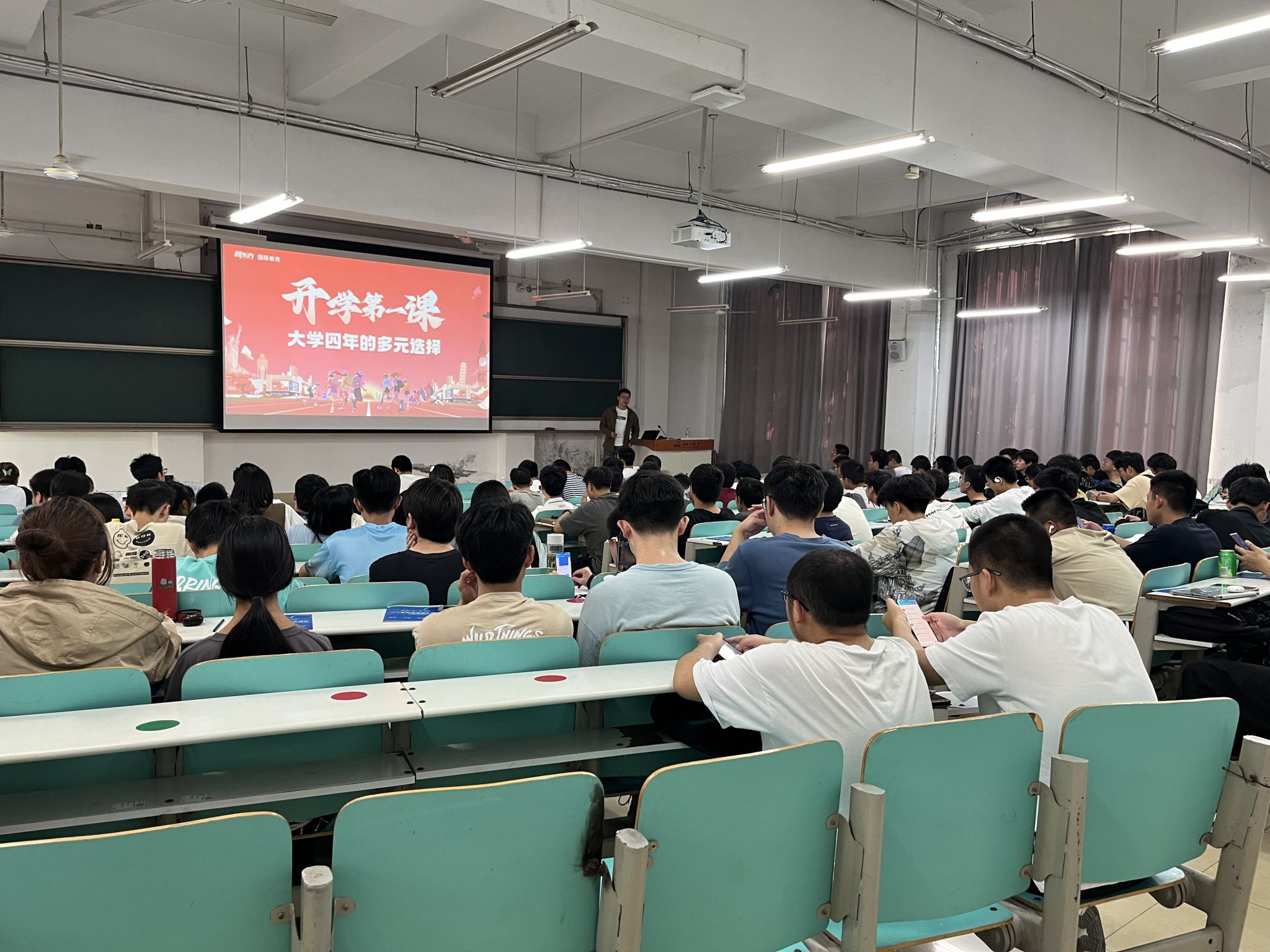 报告中,刘学东以“大学关键词”“大学生公式”为切入点,引发学生思考个人意向的大学生活;随后,结合大学成长规律、专业发展趋势、行业形势等内容,通过“时间线”和“发展路径线”带领同学们梳理各个阶段成长发展的要点。他叮嘱同学们,要牢牢把握住学业根本,培养提升个人核心竞争力;鼓励同学们提早做好个人生涯规划,并能针对性做好能力素质储备,以充足的准备迎接未来的发展。报告中,气氛轻松活跃,内容重点连连,同学们反响热烈。