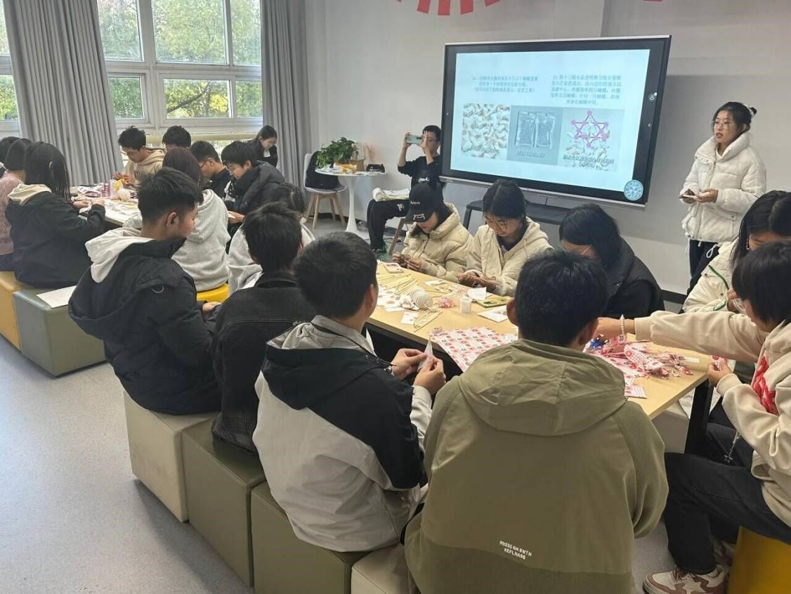在本次活动中,来自不同学院的二十位同学在工作人员的指导下一起学会了风铃的制作方法。活动准备了多种不同的彩纸,不同颜色的珠予以供同学自由组合搭配,并准备了热熔胶,绳子,剪刀等基本用具。在活动过程中,同学们在工作人员的指导下折蝴蝶、做骨架、绑绳子,最后都制作出了自己独一无二的风铃。活动结束时,大家都高举着自己的劳动成果,每个同学的脸上都流露出如风铃上各色的蝴蝶一般灿烂的笑容,留下了一次宝贵的照片。