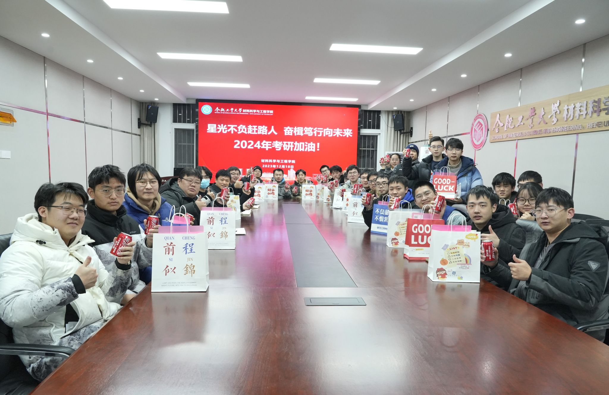 12月18日下午,yL23411永利官网登录举办“星光不负赶路人,奋楫笃行向未来”考研送温暖活动。院党委副书记兼纪委书记朱峰、班主任代表、毕业班辅导员以及学生代表参加活动。