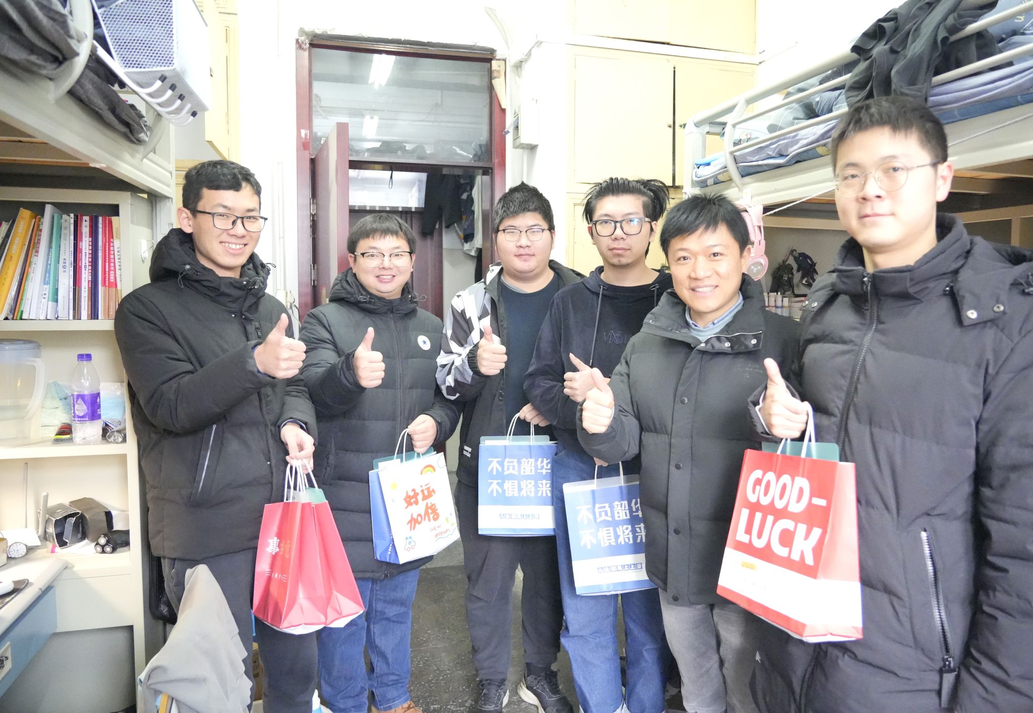 据悉,学院在活动前期面向全体党员征集了考研祝福语,并撰写贺卡。毕业班辅导员对全体考研学子开展了“一对一”全覆盖谈心谈话,给予同学们关心和鼓励。12月18日中午,朱峰和毕业班辅导员共同来到学生宿舍和“育人加油站”,走访慰问了考研同学们,关心和了解同学们考研复习状态,勉励同学们坚定信心、调整心态、争取上岸。