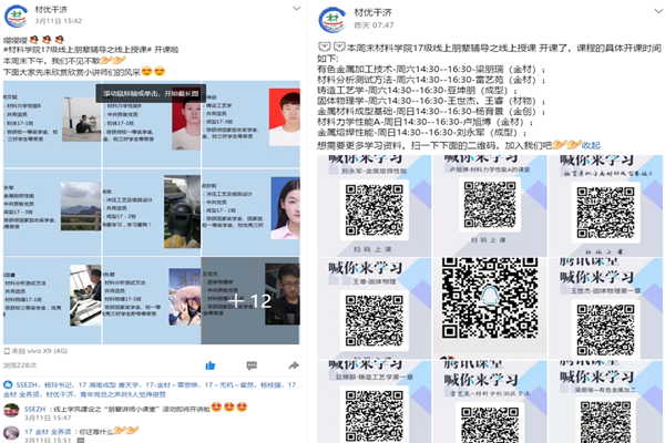 践行雷锋精神,立足促进学业发展——积极开展“材优干济”系列学风建设。为做好疫情期间线上教学服务工作,yL23411永利官网登录以“学优创优,做最美材料人”为主题,立足年级QQ公众号、腾讯课堂等网络平台,建立线上学业帮扶平台,积极组织学生党员、学生骨干发挥榜样示范作用,先后推出朋辈辅导之“笔尖课堂” “知识点短视频分享” “小讲师特色课堂”等主题学风建设活动,通过分享优秀习笔记、学习经验、学习成果,加强朋辈辅导帮扶力度,帮助学生养成良好的线上学习习惯,对线上学习困难学生,开展“特色小课堂”线上朋辈交流答疑,营造了良好的线上学习氛围。