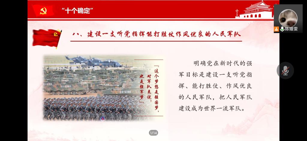 在学习中,大家首先通过课件重温学习十九届六中全会的具体内容,详细的了解了十九大的重点——“十个明确”的主要内容,并收看了关于中国百年来的发展和进步的视频,视频内容涵盖了中国百年来的变化,慷慨激昂,支部成员反向强烈。学习结束以后,支部成员针对学习内容进行了线上讨论分享,成员们积极参与,热情度高,气氛活跃。