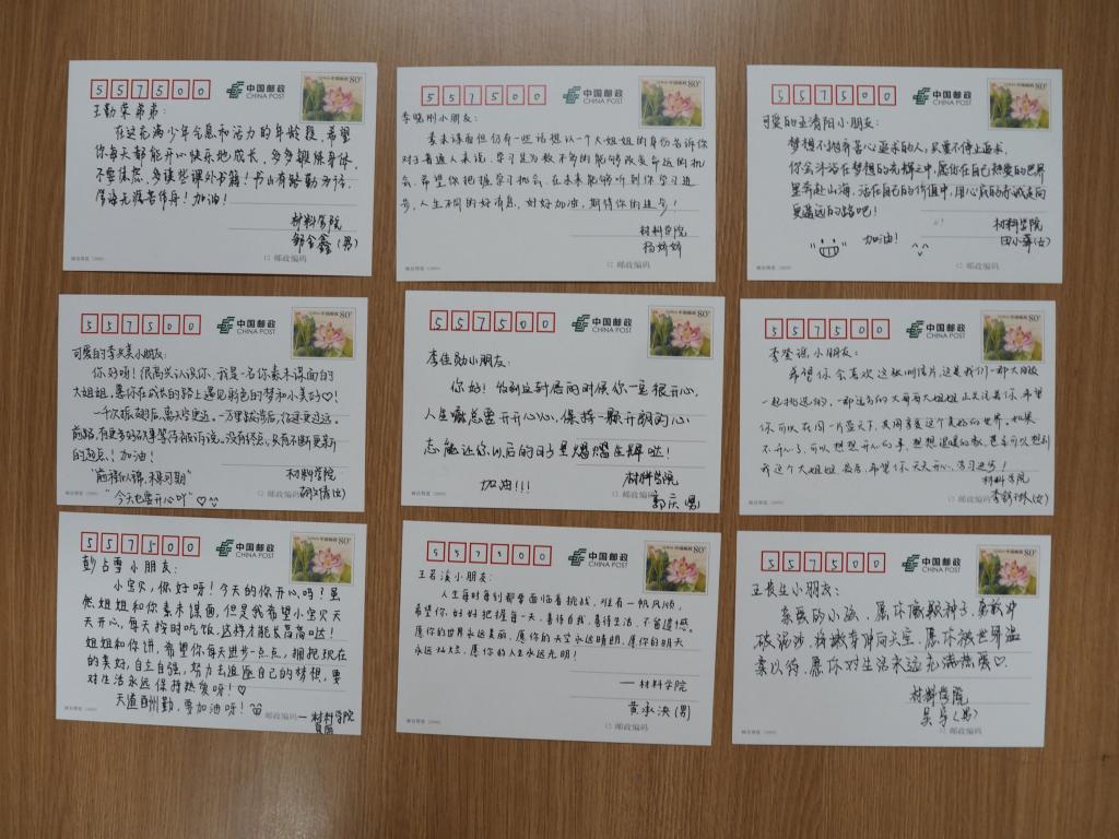 4月13日,学院研究生会成员和材物化研究生党支部的党员们齐聚yL23411永利官网登录小红楼103,为长青第二小学五年级(2)班的27名小学生精心挑选yL23411永利官网登录主题的明信片,并认真书写了对孩子们想说的话,为孩子们送去美好的祝福。有的同学们讲述了最近学习生活中的趣事,有的同学描绘了工大校园的美丽景色,有的同学分享了大学生活的美好……在明信片的最后,大家不约而同地写下了对丹寨孩子们的鼓励与祝福,希望他们能够健康快乐地成长。此外,学院还为山区小朋友们准备了学习工具大礼包,在精神上给予鼓励的同时,也为小朋友们送上最需要的物资,帮助他们更好的求学与成长!