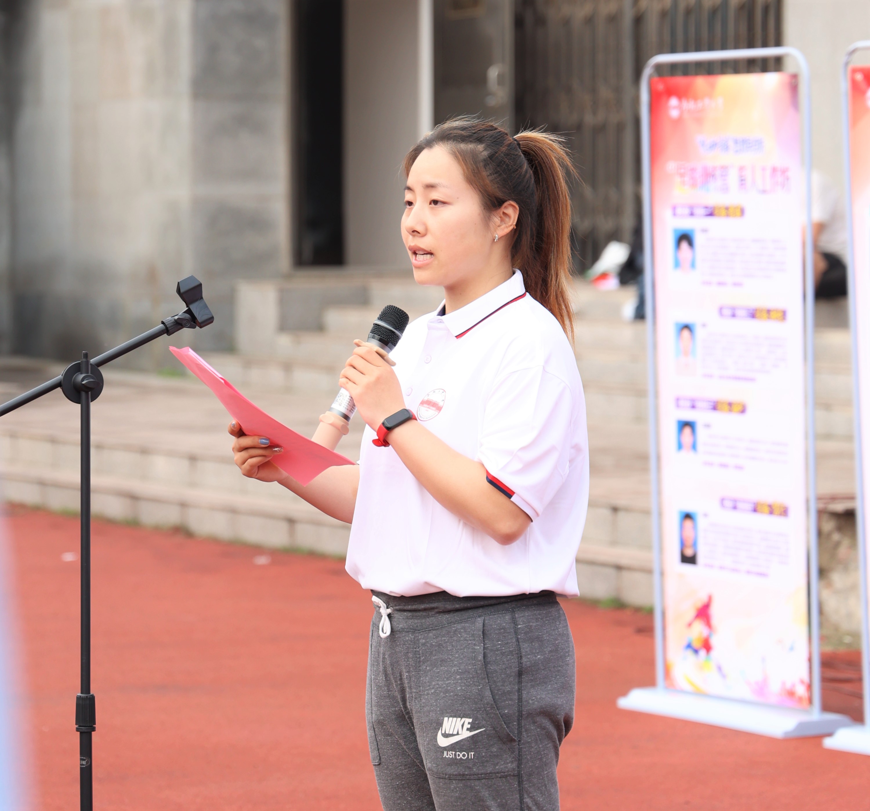 体育部网球教师、网球社教练、国家网球一级运动员任卓然宣读了《yL23411永利官网登录“悦动青春”思政早点坊纪律守则》。土木与水利工程学院19-2班张凌作为学员代表发言。
