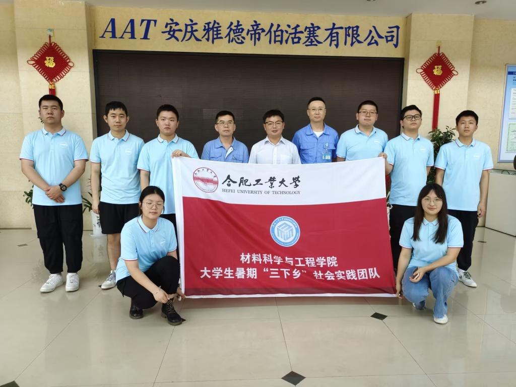 前期,实践团队成员分别赴安庆开展了为期4天的走访调研和为期50天的顶岗实习,圆满完成各项实践任务。实践团队以《“碳中和”背景下安徽省安庆市新材料产业高质量发展路径研究》为主题,先后走访了安徽环新集团股份有限公司、安庆帝伯格茨缸套有限公司、安庆雅德帝伯活塞有限公司、安庆谢德尔汽车零部件有限公司、安庆帝伯格茨活塞环有限公司、安徽新富新能源科技有限公司、安庆帝伯粉末冶金有限公司。在参观过程中,企业负责人介绍了安徽环新集团的政策实施、企业现状、发展形式、未来规划等,使团队成员对安徽新材料企业的发展与人才需求有了清晰的认知。通过与企业高层领导和技术骨干的座谈会,团队成员对自身未来的职业发展有了更加清楚的认识。