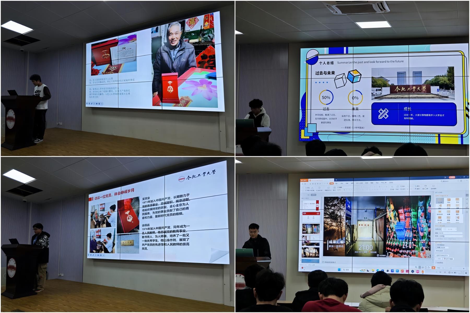 本次活动以“实践感悟新时代,挺膺担当新征程”为主题,引导2023级新生着眼于书本之外,体验新时代,踏上新征程,结合返家乡社会实践等多种形式,设计了寻味“一封家书”,品味家国情怀、访谈“一位党员”,践行初心使命、撰写“一份总结”,总结过去展望未来、精读“一本经典”,提升理论素养、开展一场宣讲,做好形象代言、调研“一座家乡”,感悟伟大变革等十项内容。学院2023级300余名学生完成了本次寒假成长计划内容。全体同学精心设计准备,积极参与展示,展现了他们在寒假期间寻访初心故事,实地走访老党员、走进高中母校,宣传自己的大学、深入基层一线,服务奉献青春的丰富经历和感人故事。金材23-1班张幸初同学以“回到家乡,去往成长”为主题,从“最难是家滋味”到“雷锋精神我堪当”,为我们讲述了他完成六项作业的经历,又用从初踏入校园的那一封家书到将要离家再写下的一封家书,为我们展现了家书的真正意义何在。金材23-3班张梦涵同学以“心怀故乡,情系家国”为主题,讲述了她调研家乡云南新寨村——中国咖啡第一村乡村振兴的发展面貌;粉体23-1班的四名同学回到家乡西安,开展了关于旅游热点“大唐不夜城”的发展经验以及对西安城市气质提升的影响等。