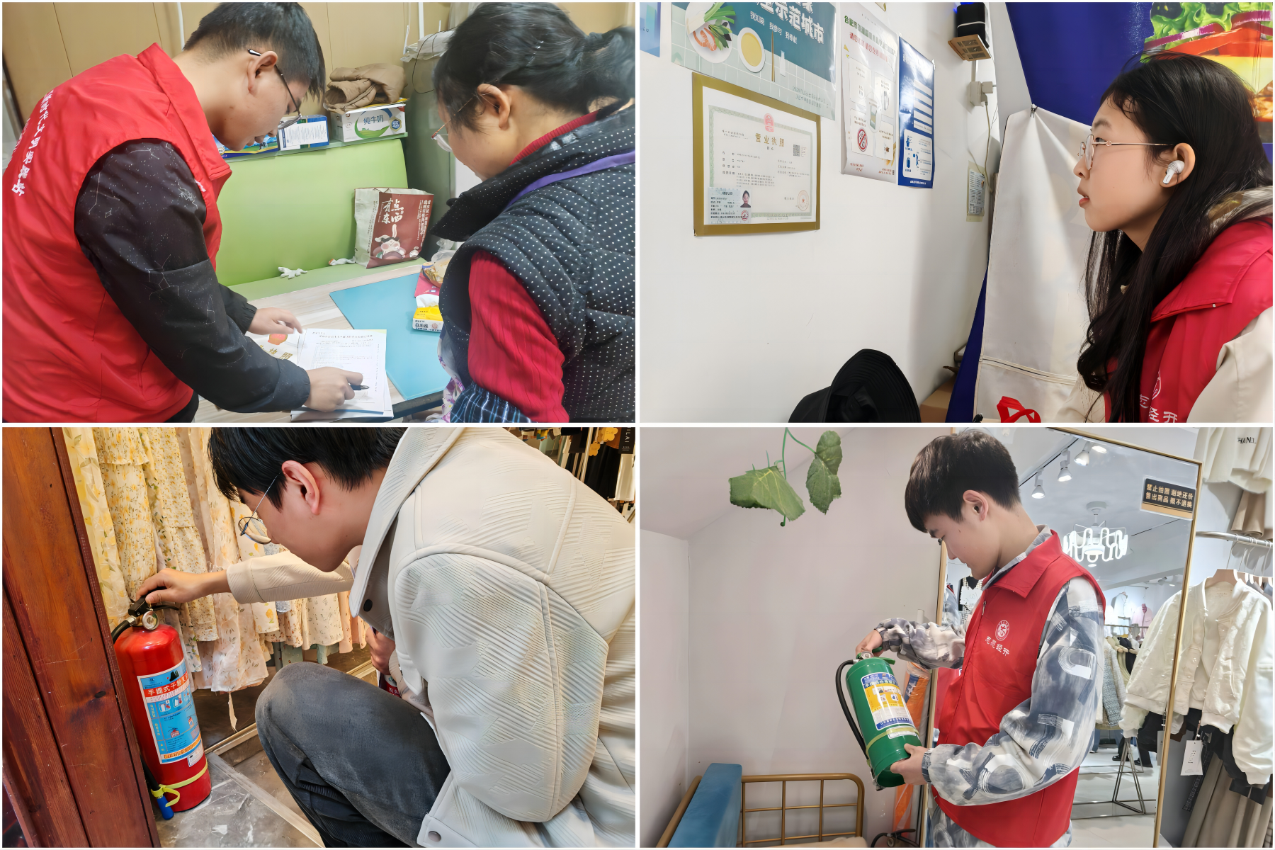 社区工作人员首先对同学们进行了灭火器检查和消防安全普查单填写培训,大家认真聆听学习。同学们按照不同街道分头分组开展工作,仔细检查了街道店铺中是否按要求安装了灭火设备、灭火设备能否正常使用、是否安装了电气火灾监测设备等,并如实填写了消防安全普查单,耐心宣传消防器材使用方法。此外,志愿者还仔细检查了社区公共场所的消防设施及其使用情况。