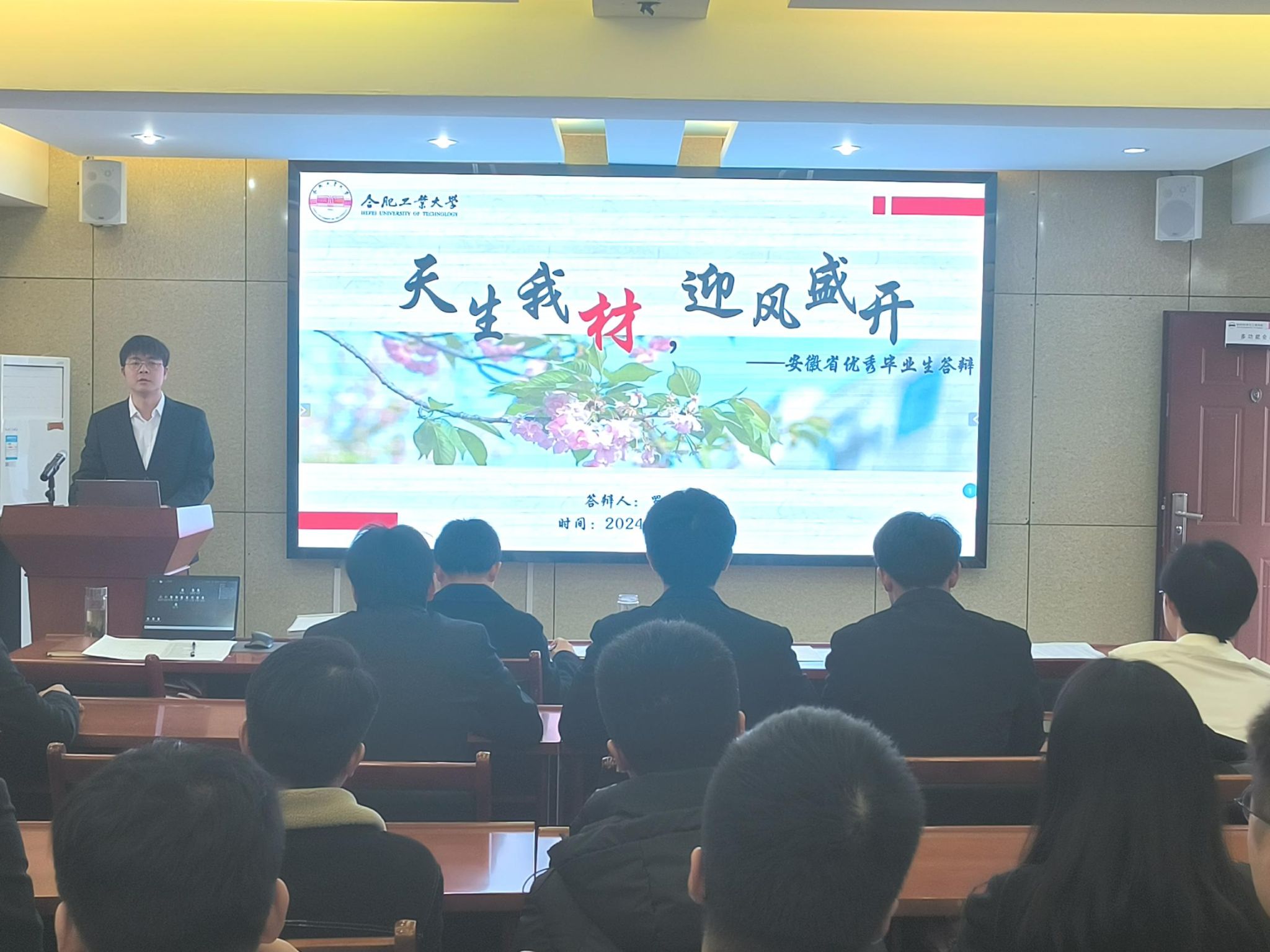 近日,yL23411永利官网登录在材料楼三楼多功能厅举办安徽省“优秀毕业生”风采展示评选活动。学院相关负责人、毕业班年级辅导员和学生代表参与本次活动。