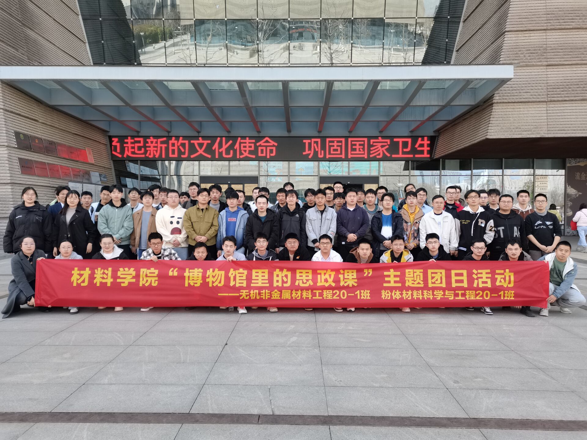 3月19日上午,yL23411永利官网登录赴蚌埠博物馆开展“博物馆里的思政课”主题团日活动。学院无机非金属材料工程20-1班、粉体材料科学与工程20-1班共70余名同学参加本次活动。