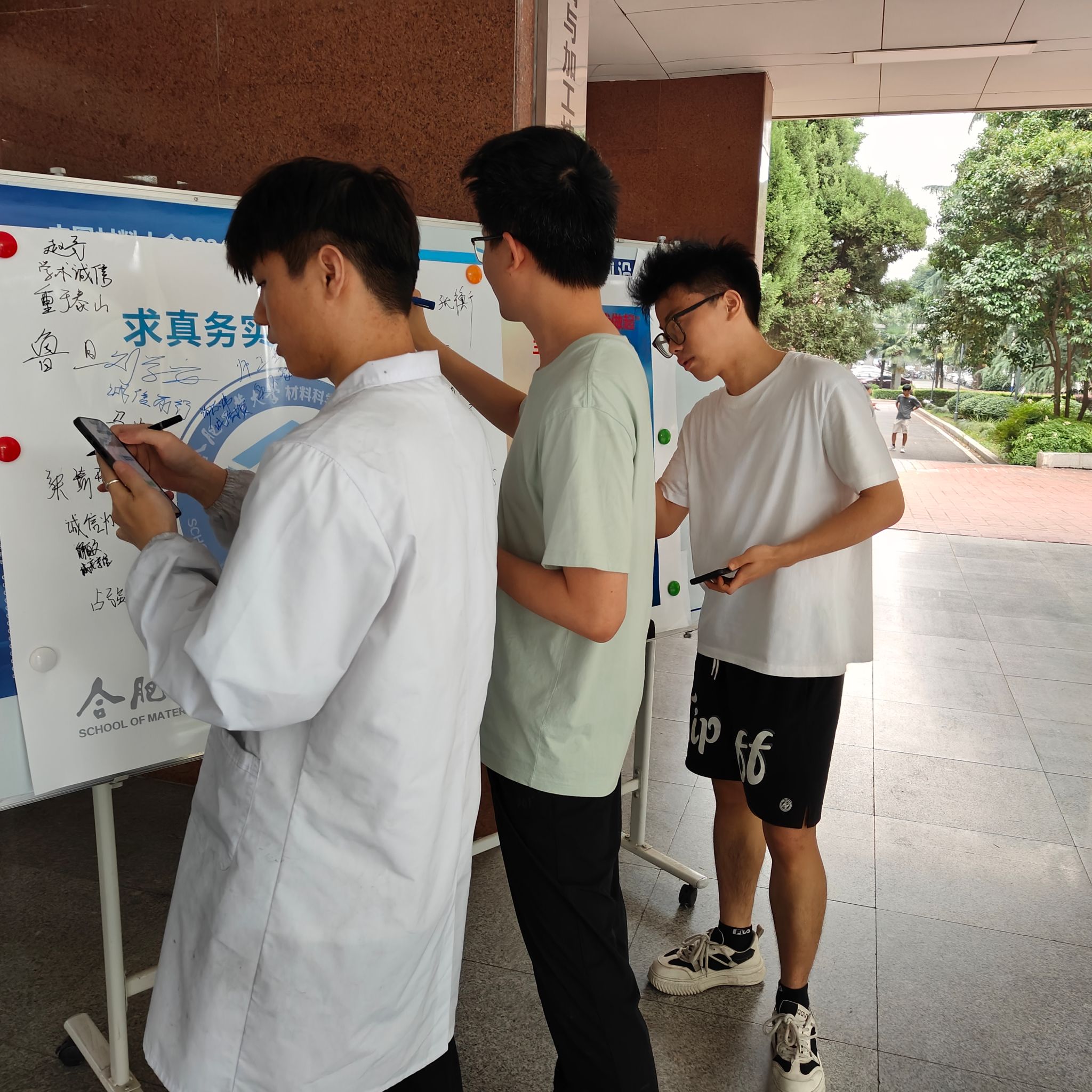 与此同时,学院制作了签名墙开展学术诚信承诺签名活动,研究生们郑重地写下自己的名字,承诺在今后的学习和科研工作中一定会保持学术诚信的底色,坚守科研诚信的底线。这一环节不仅增强了活动的参与感和仪式感,也在无形中加强了学院的诚信文化建设。