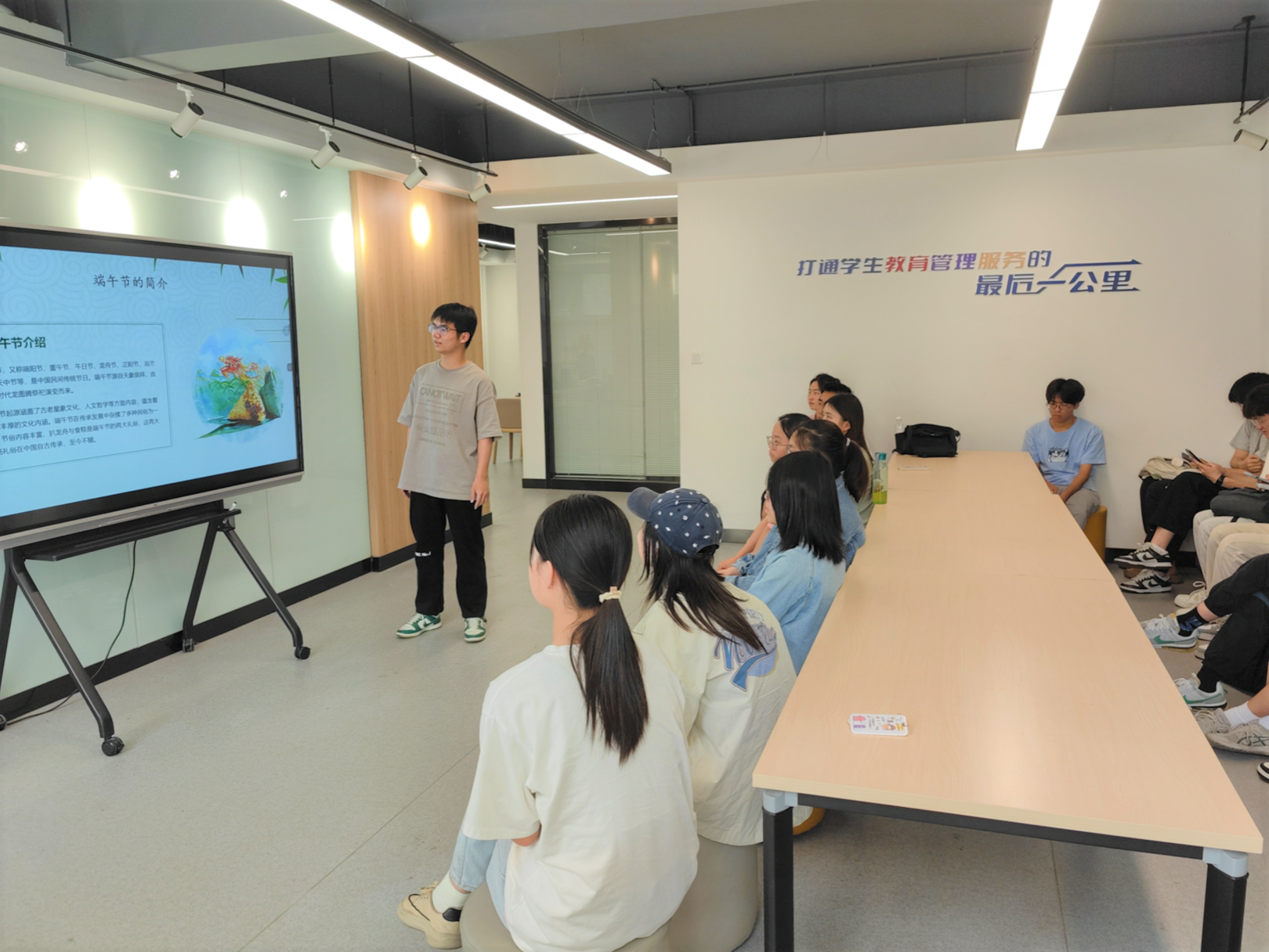 6月7日下午,yL23411永利官网登录本科生第一党支部在翡翠湖校区二号学生社区沙龙空间举办“‘粽’情端午,爱在工大”主题活动,支部翡翠湖校区全体预备党员及第71期积极分子参加。