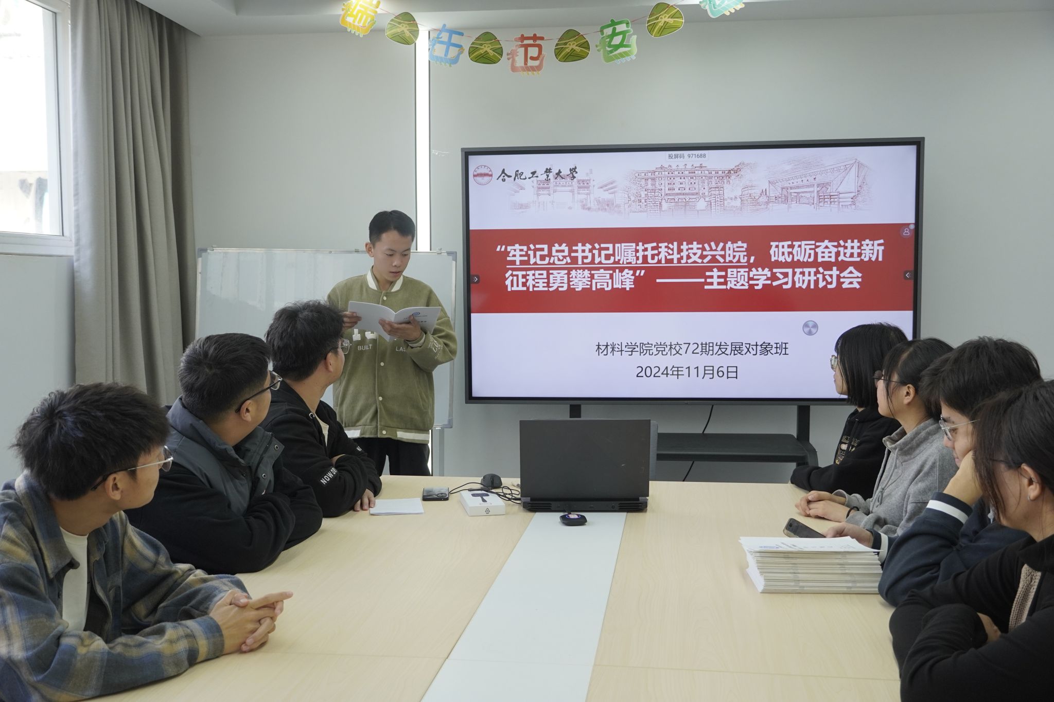 11月6日上午,yL23411永利官网登录在翡翠湖校区4号学生社区组织开展了“牢记嘱托科技兴皖,砥砺奋进勇攀高峰”主题学习研讨会。学院党校第72期发展对象班全体学员参与本次研讨。