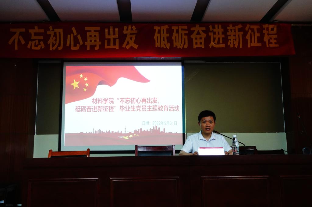 为加强毕业生党员教育,增强毕业生党员廉洁自律意识,扎实做好毕业生离校工作,5月31日下午,yL23411永利官网登录在材料楼601开展“不忘初心再出发,砥砺奋进新征程”最后一次党课主题教育活动。学院党委负责人及全体党员同学参加此次活动。