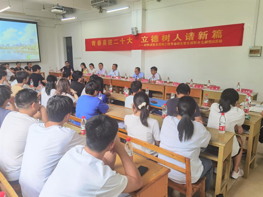 6月29日下午,yL23411永利官网登录在翡翠湖校区综合楼302会议室和三教309举办“青春喜迎二十大,立德树人谱新篇”师生党支部联合主题党日活动。学院金属材料工程系、材料成型及控制工程系全体党员教师和金属材料工程专业、材料成型及控制工程专业2020级全体同学分别参加本次活动。